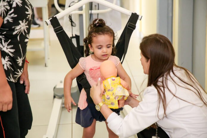 “Ela andava com apoio, mas quando soltava as mãos para andar sozinha, tinha medo por conta das quedas. Então, testamos o suspensório com a Maitê, porque o instrumento dá maior segurança à criança. Dias depois, a mãe me mandou um vídeo em que a bebê conseguiu andar sozinha em casa, sem se apoiar”, explicou a fisioterapeuta pediátrica, Vanessa Fialho.