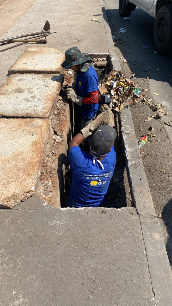 Nesta semana, as equipes realizaram a limpeza e desobstrução de 37 bocas de lobo na Avenida Leste — uma das principais vias da região. O serviço melhora o escoamento da água das chuvas e evita pontos de acúmulo. Na QNM 27, foi feita a limpeza da galeria de águas pluviais, garantindo o bom funcionamento da rede de drenagem.