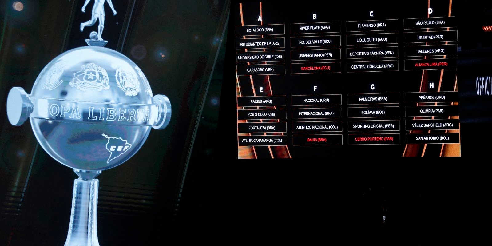 O último brasileiro na competição é o Palmeiras, que terá pela frente Bolívar (Bolívia), Sporting Cristal (Peru) e Cerro Porteño (Paraguai).