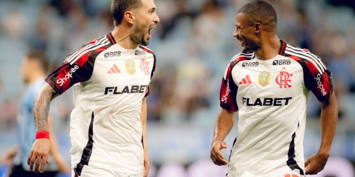 Com dois gols de Arraxxxca, o Flamengo derrota o Grêmio, na casa do adversário, e soma MAIS 3 pontos no Brasileirão! #VamosFlamengo pic.twitter.com/ujwGRa79FX