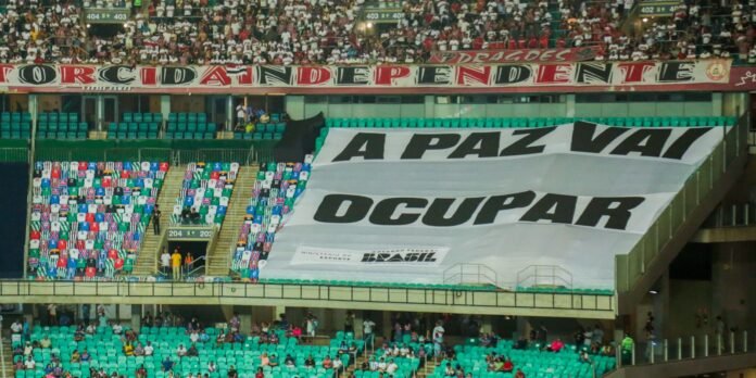 As 384 cadeiras vazias (nas quais foram colocadas camisas de diferentes times) tinham a intenção de representar as pessoas que perderam a vida por conta da violência no futebol entre os anos de 1988 e de 2023. Além disso, foi estendida na arquibancada uma imensa bandeira branca com a frase “A paz vai ocupar”.