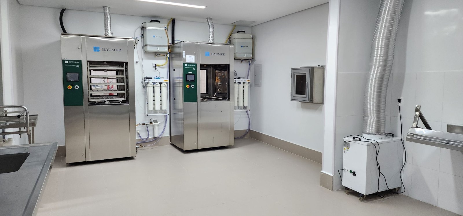 O setor de desinfecção recebe e limpa todos os materiais reutilizáveis, de forma que estejam prontos para uso em qualquer área do hospital. Além de agora ter uma lavadora ultrassônica, que automatiza o processo de limpeza, e duas máquinas de desinfecção com secagem e água quente, esse serviço passará a funcionar 24 horas.