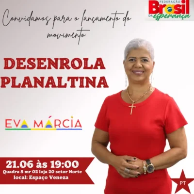 O movimento deve ser também um catalisador para fomentar a pré-candidatura da professora Eva Márcia (PT) à prefeita do município de Planaltina.