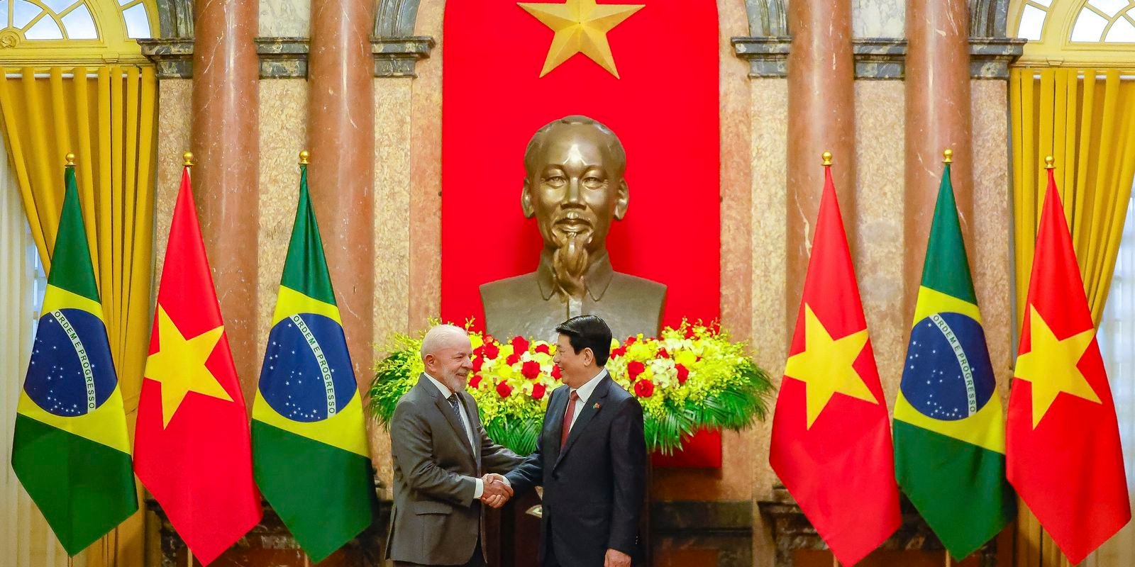 Nesta sexta-feira (28), em Hanói, Lula foi recepcionado em cerimônia oficial de boas-vindas, no Palácio Presidencial. Ao longo do dia, o presidente brasileiro e sua comitiva tiveram encontros com líderes do país, com o primeiro-ministro vietnamita, Pham Minh Chinh; com o presidente da Assembleia Nacional do Vietnã, Trần Thanh Mẫn; e com o secretário-geral do Comitê Central do Partido Comunista do país, Tô Lâm.