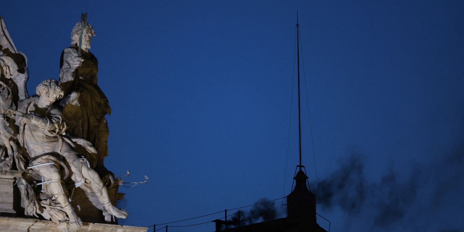 O Vaticano informou há pouco que o novo papa ainda não foi escolhido. A fumaça preta saiu da chaminé acima da Capela Sistina, indicando votos inconclusivos.